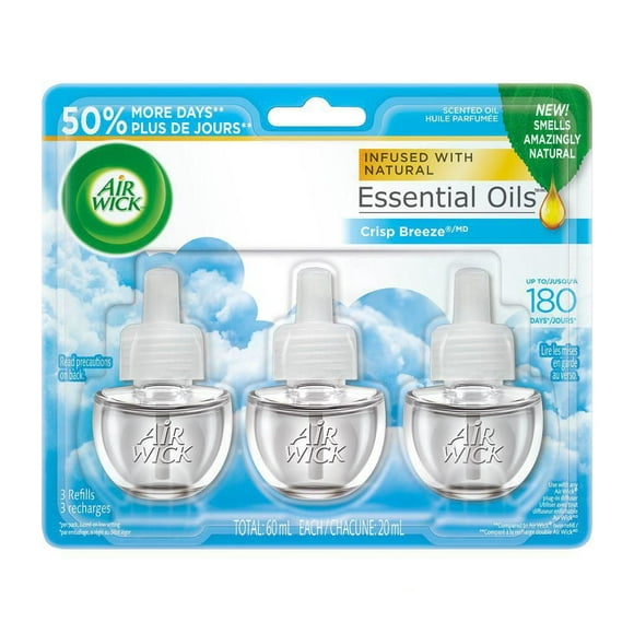 Air Wick Plug-in Air Freshener, Scented Oil Refills, Crisp Breeze, 3 Refills