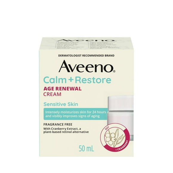 Aveeno Calm + Restore Age Renewal Cream, Oat, Niacinamide, Cranberry Extract, Anti Aging Dry Skin Moisturizer, Fragrance Free, 50 mL $31.96