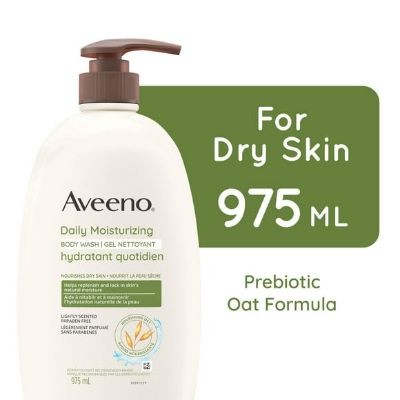 Aveeno Daily Moisturizing Body Wash, Dry Skin Care, Gentle Cleanser, Oat, Emollient, Shower Product, Lightly Scented, 975 mL