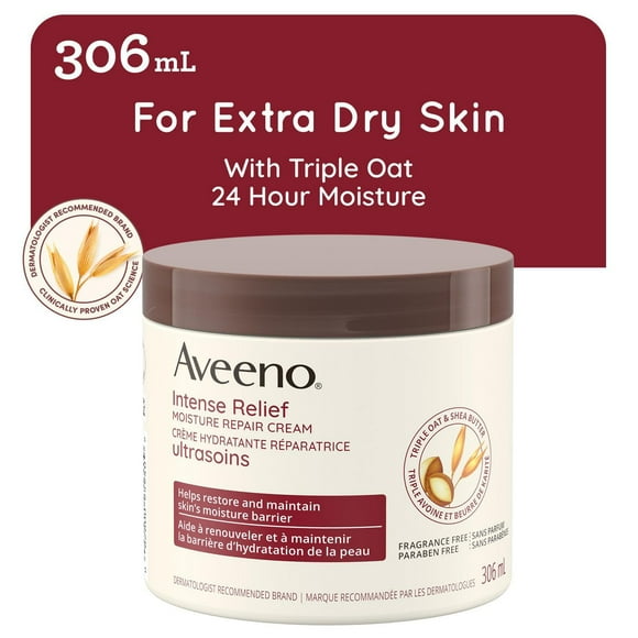 Aveeno Intense Relief Moisture Repair Cream, Shea Butter, Triple Oat, Extra Dry Skin Moisturizer, Fragrance Free, 306 mL