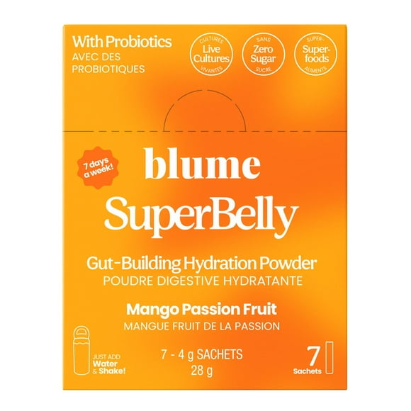 BLUME SuperBelly Gut Health-Building Hydration Powder with Pre/Pro-biotics & Electrolytes – Mango Passionfruit Flavoured