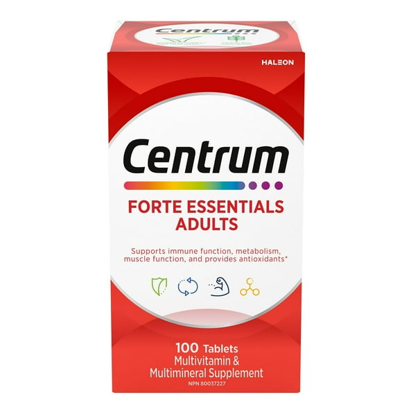Centrum Forte Essentials Adult Multivitamin and Multimineral Supplement Tablets, 100 Count, 100 Tablets $12.47 Save:$7.00(36%)