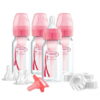 Dr. Browns® Natural Flow Anti-Colic Options+ Narrow Breast to Bottle Pump & Store Feeding Set with Slow Flow Nipples, Baby Bottle Travel Caps and 100% Silicone HappyPaci One-Piece Pacifier, Pink