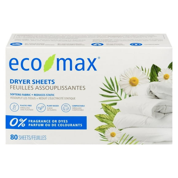 Eco-Max Dryer Sheets Fragrance Free 80 sheets
