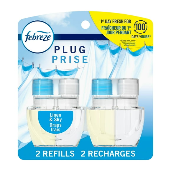 Febreze Plug In Air Freshener, Odor-Fighting Scented Oil Refill, Linen & Sky Scent, 52 mL