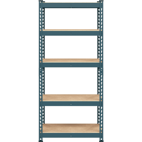 Fullfurnique 59″ Height 5 Tier Metal Boltless Storage Shelf with Anti-Skid Rubber Pads, Neptune Blue