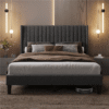 Fullfurnique Upholstered Bed Frame with Wing Side and Channel Headboard, Queen, Dark Gray