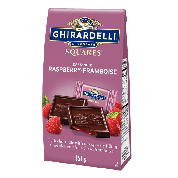 GHIRARDELLI Dark Chocolate Raspberry Squares Bag, 151g, GHIRARDELLI BAG DARK RASPBERRY 151G $9.97