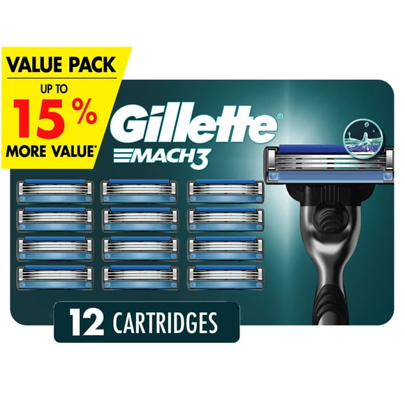 Gillette Mach3 Razor Blade Refills Razor Cartridges, Razor Refills for Men With Lubrication Strip, 3-Blade Razor Blades for Close Shave, 12 Count