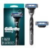 Gillette Mach3 Shaving Razor for Menillette 3-Blade Razor Handle for Mens Grooming, 2 Razor Blade Refills, Razor Blades with Lubrication Strip, 1CT