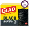 Glad Black Garbage Bags – Giant 184 Litres, – 40 Trash Bags