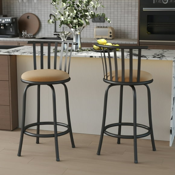 Homy Casa 2 Pack Industrial Adjustable Pub Stool Set, Faux Suede Upholstery Metal Stool for Dining Room $93.97