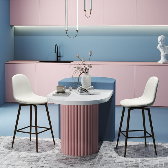 Homy Casa Set of 2 Swivel Counter Stools with Curved Upholstered Seat for Kitchen Dining Room, Beige Fabric