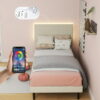 Homy Casa Upholstered Twin Bed with LED Light Strip and Charging Ports for Kids or Teens Room, Beige