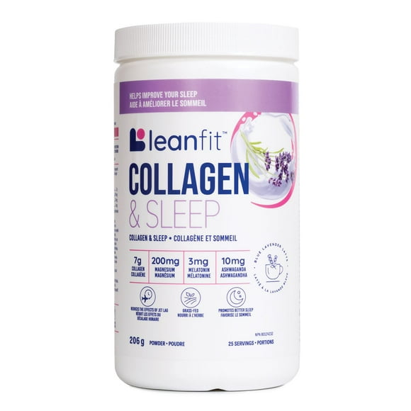 LEANFIT COLLAGEN & SLEEP™ Blue Lavender Latte – 7g Collagen + 200mg Magnesium + 3mg Melatonin + 10mg Ashwagandha – Improves Sleep & Reduces Effects of Jet Lag – 25 Servings, 206g Tub