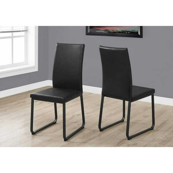 Monarch Specialties Dining Chair, Set Of 2, Side, Upholstered, Kitchen, Dining Room, Pu Leather Look, Metal, Black, Contemporary, Modern