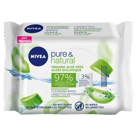 Nivea Biodegradable Pure & Natural Cleansing Wipes, Dry and Sensitive Skin, 40 Wipes