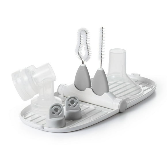 OXO Tot – Breast Pump Parts Drying Rack with Detail Brushes – Compact and Portable – Ideal for cleaning and drying Small Parts – Gray