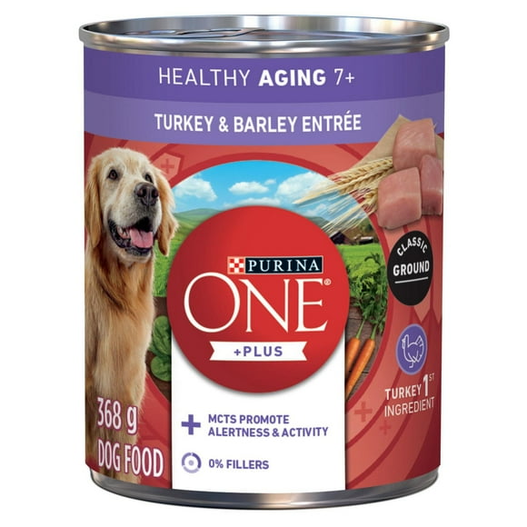 Purina ONE Plus+ Healthy Aging 7+ Classic Ground Turkey & Barley Entrée, Wet Dog Food 368 g, 368 g