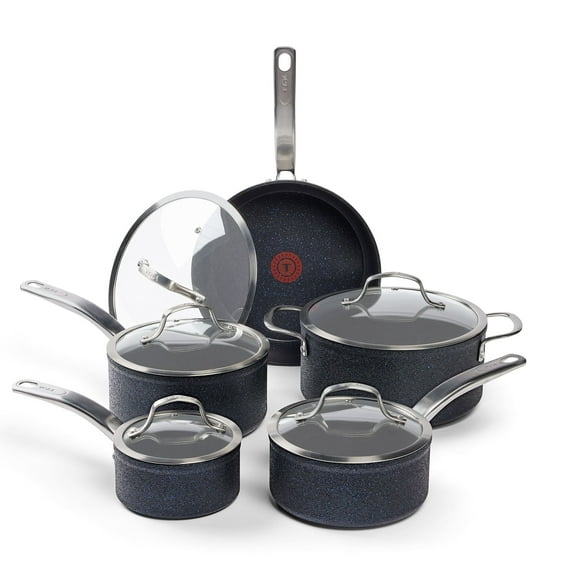 T-fal Stone Shield 10-piece Cookware set with DefenseShield Technology, 6-multilayer construction, robust stone texture, dishwasher and oven-safe, 10 PC
