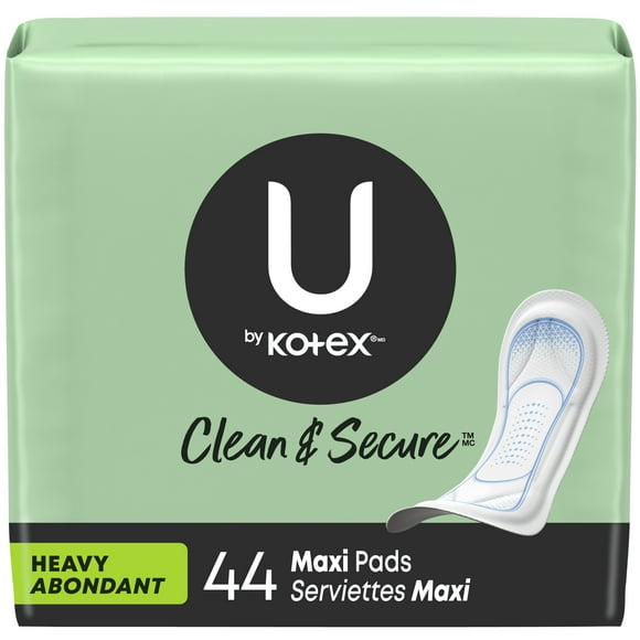 U by Kotex Clean & Secure Maxi Pads, Heavy Absorbency, Unscented, 44 Count