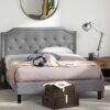 Fullfurnique Upholstered Bed Frame with Wing Side and Channel Headboard, Queen, Dark Gray
